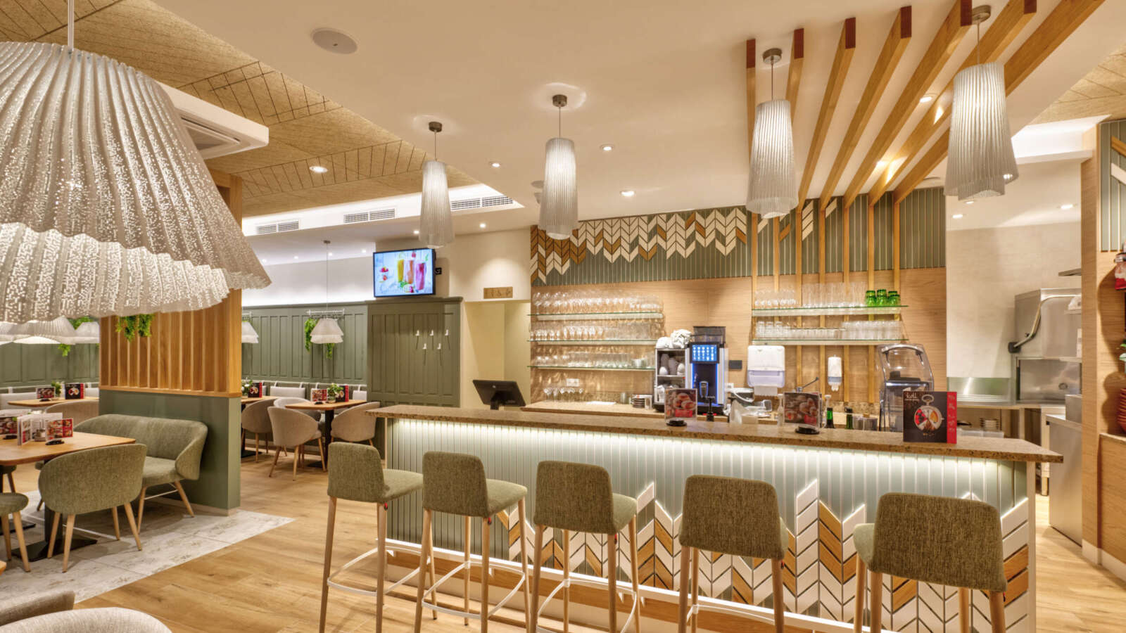 More enjoyment, more craftsmanship, more Koll! AICHINGER had the pleasure of designing another branch of the Koll Bakery in Katzelsdorf in Austria – a place where the aroma of bread and genuine baking art meet a unique ambience. The harmonious combination of fresh sage green and light wood gives the café a warm, inviting atmosphere and invites guests to linger.